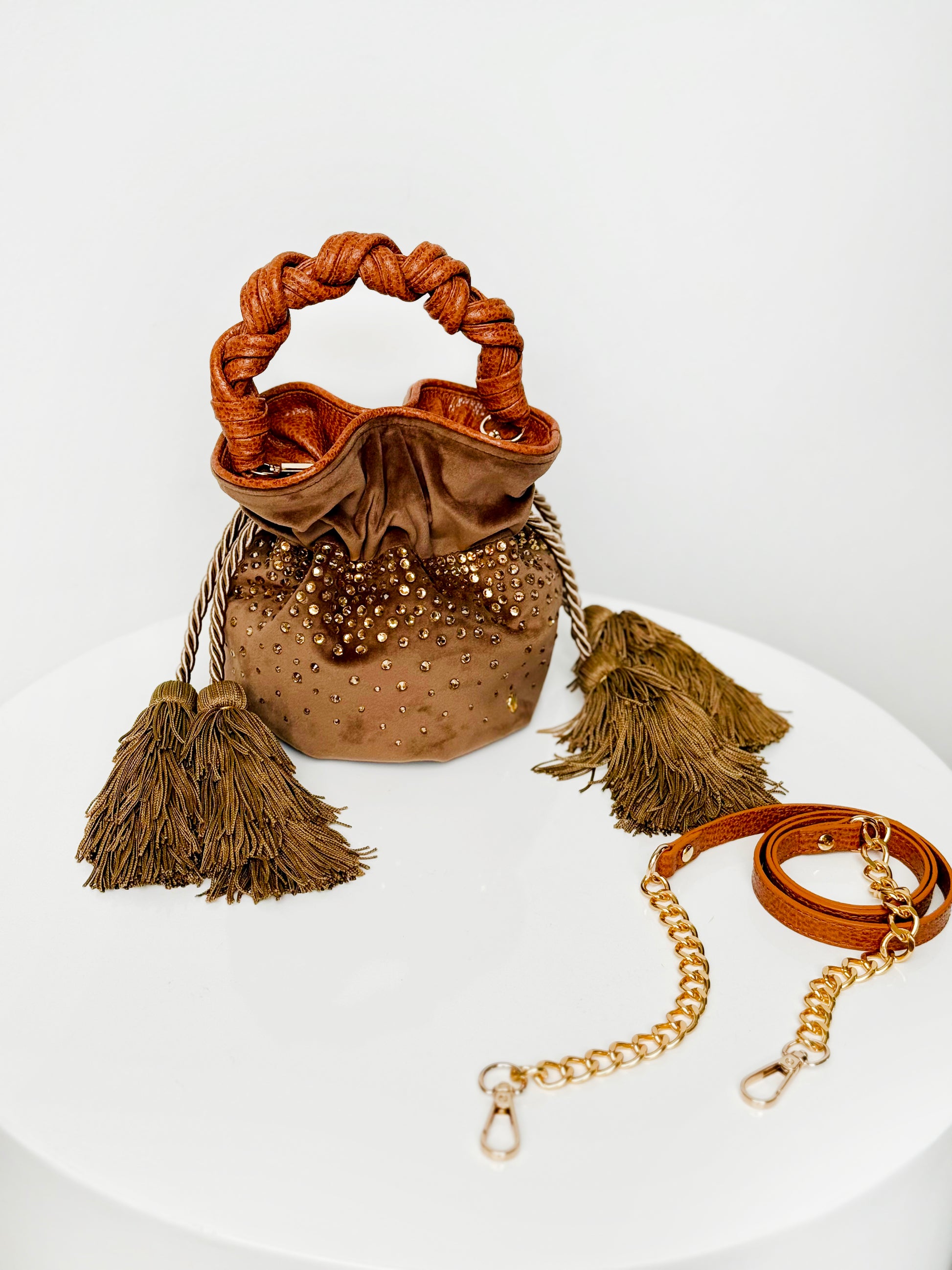 Confeccionada en cuero 100% colombiano y terciopelo, en un tono moca profundo, cálido y elegante, esta pieza captura la sofisticación moderna sin perder su atemporalidad. Es un color versátil, rico y refinado, capaz de elevar cualquier look y convertirse en un esencial del clóset contemporáneo.