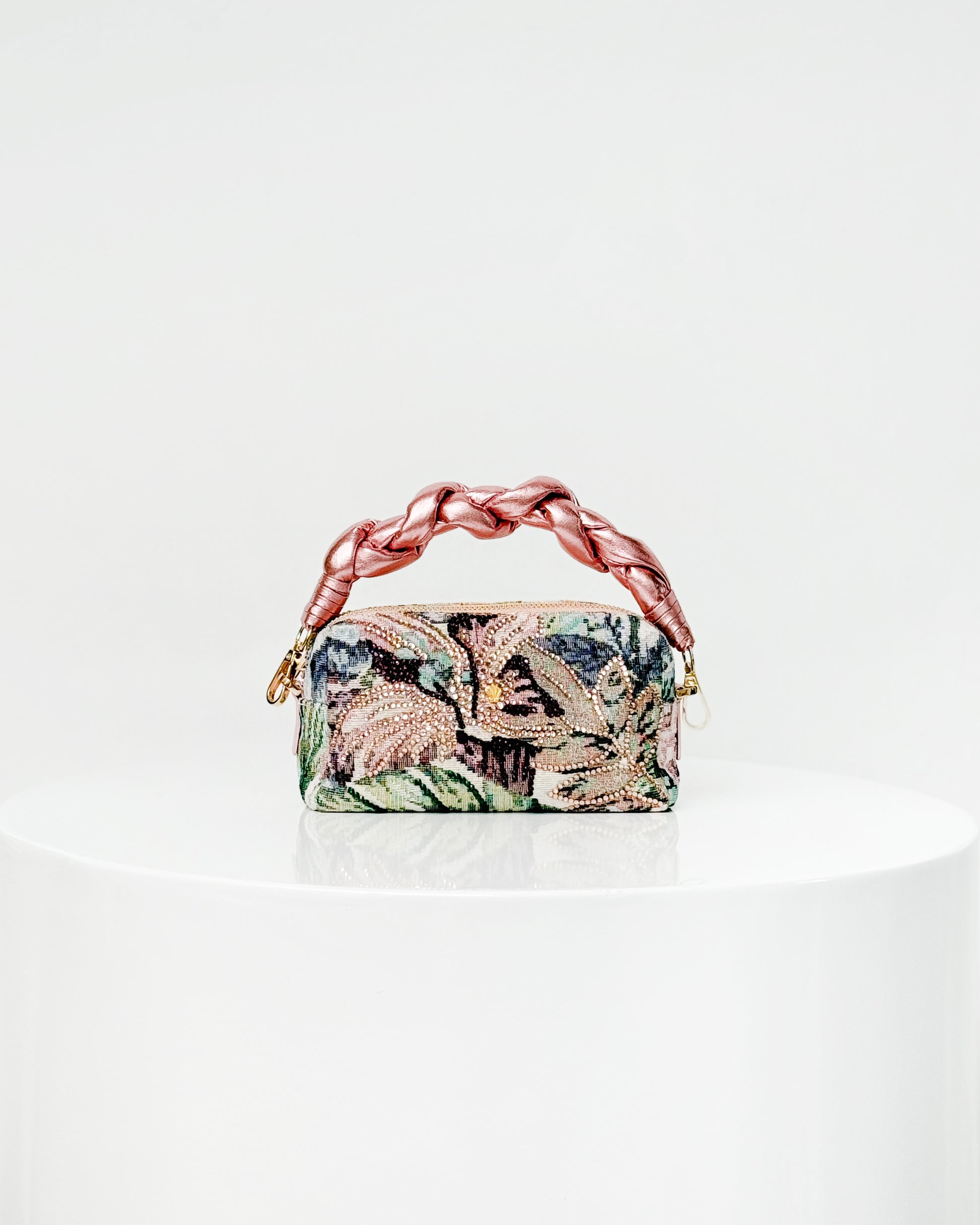Nuestro Cosmo Floret de Pomparosa es una pieza de marroquinería de lujo hecha en Colombia, diseñada para mujeres que buscan estilo, arte y autenticidad en cada detalle.