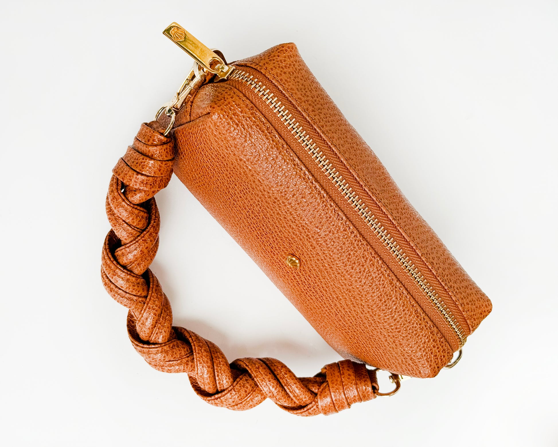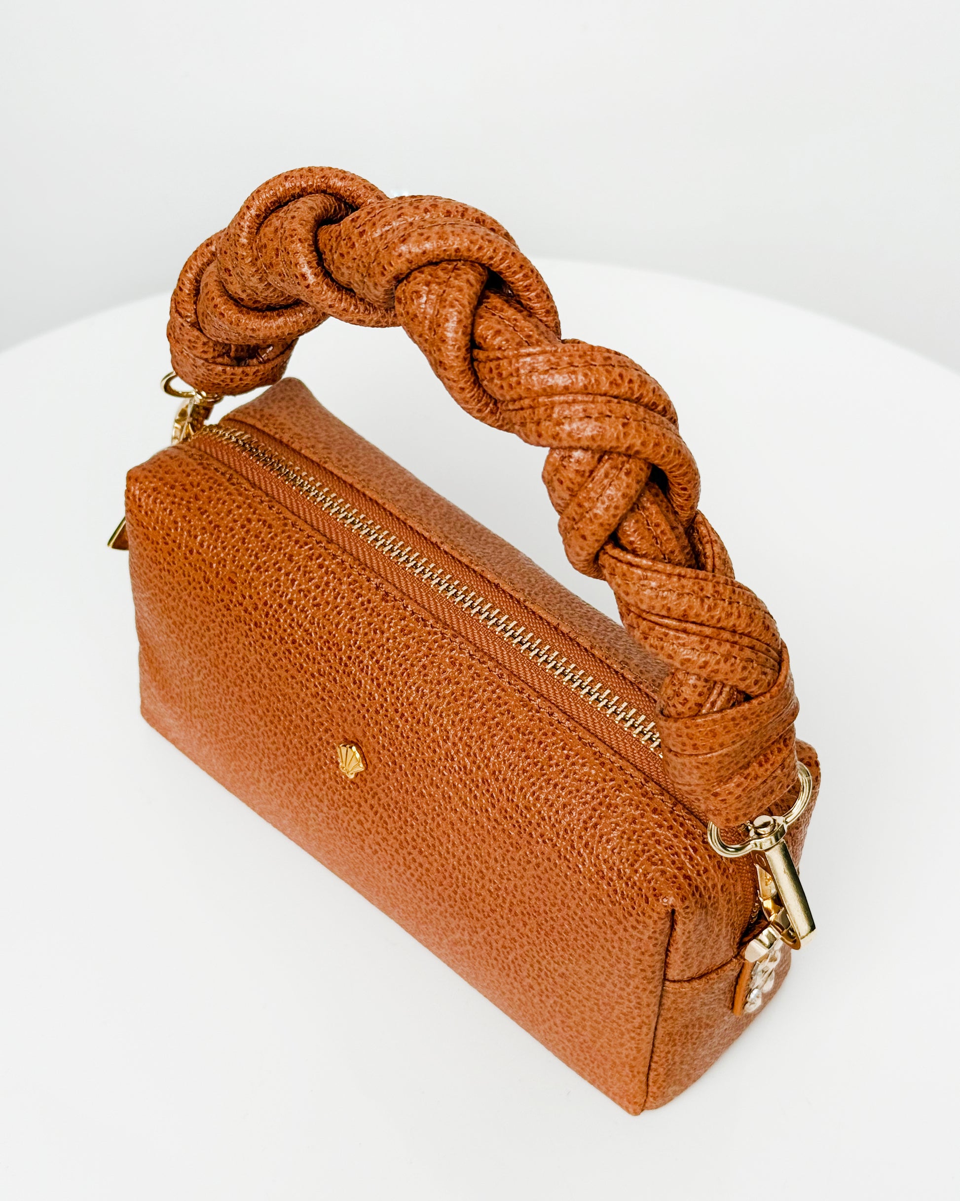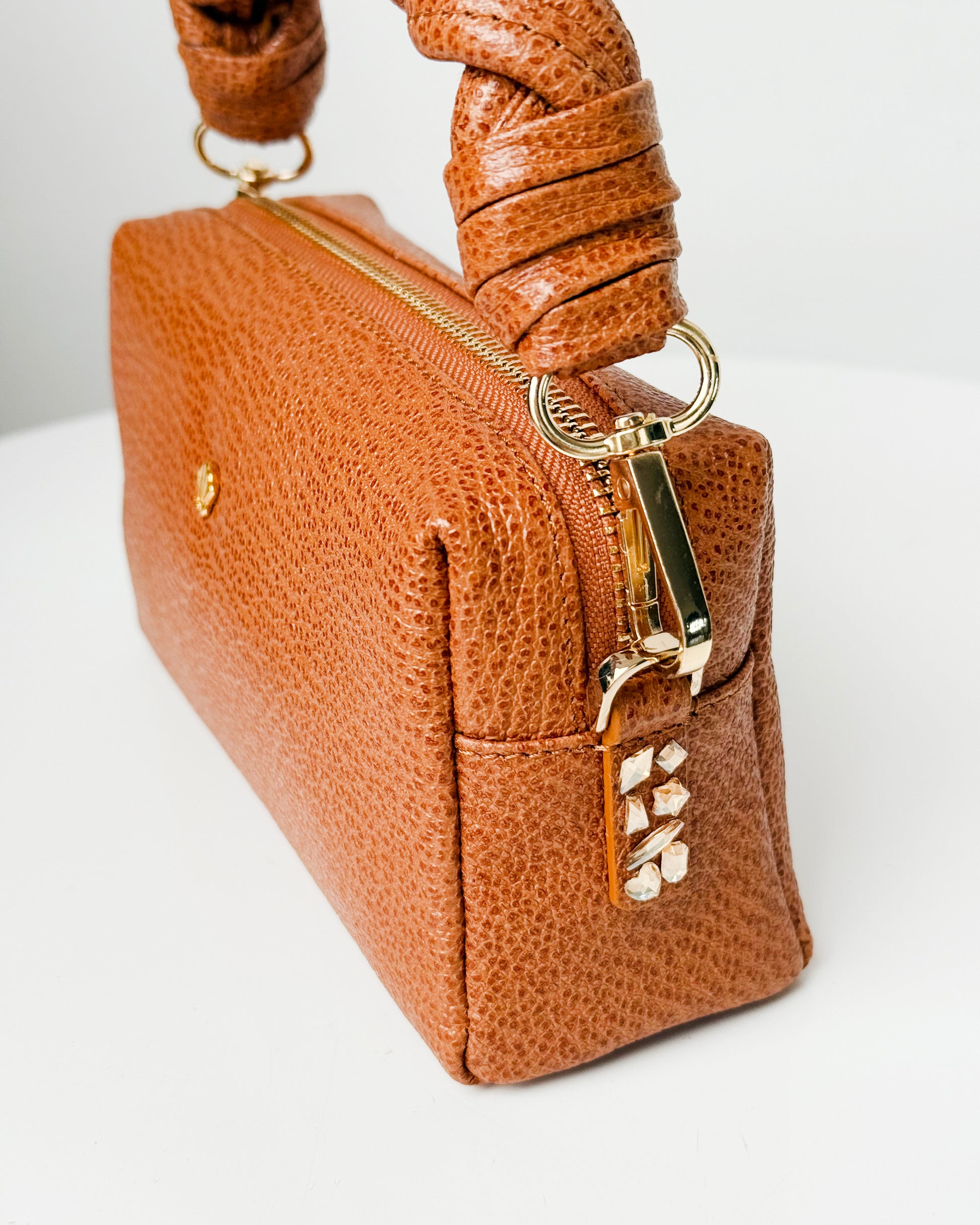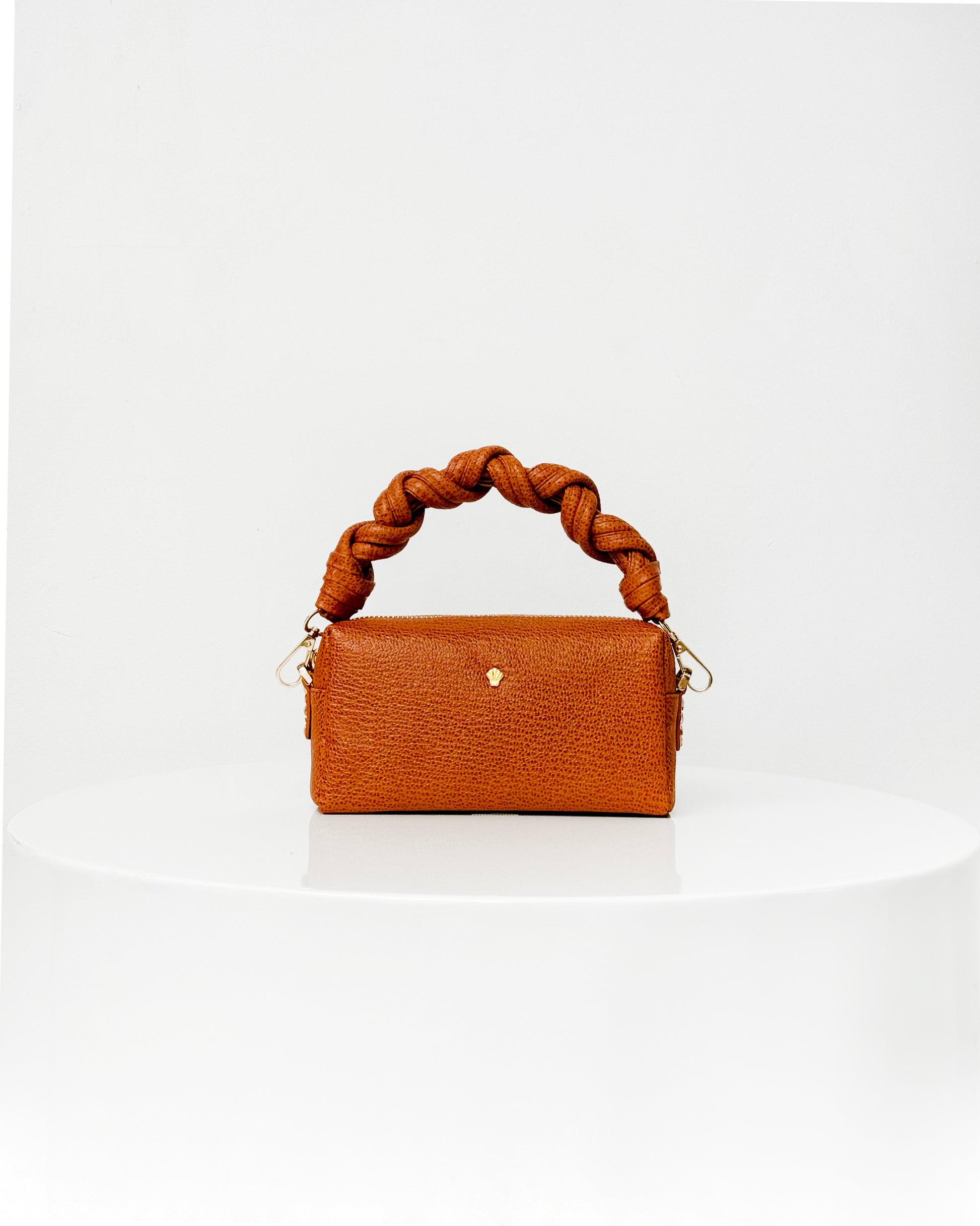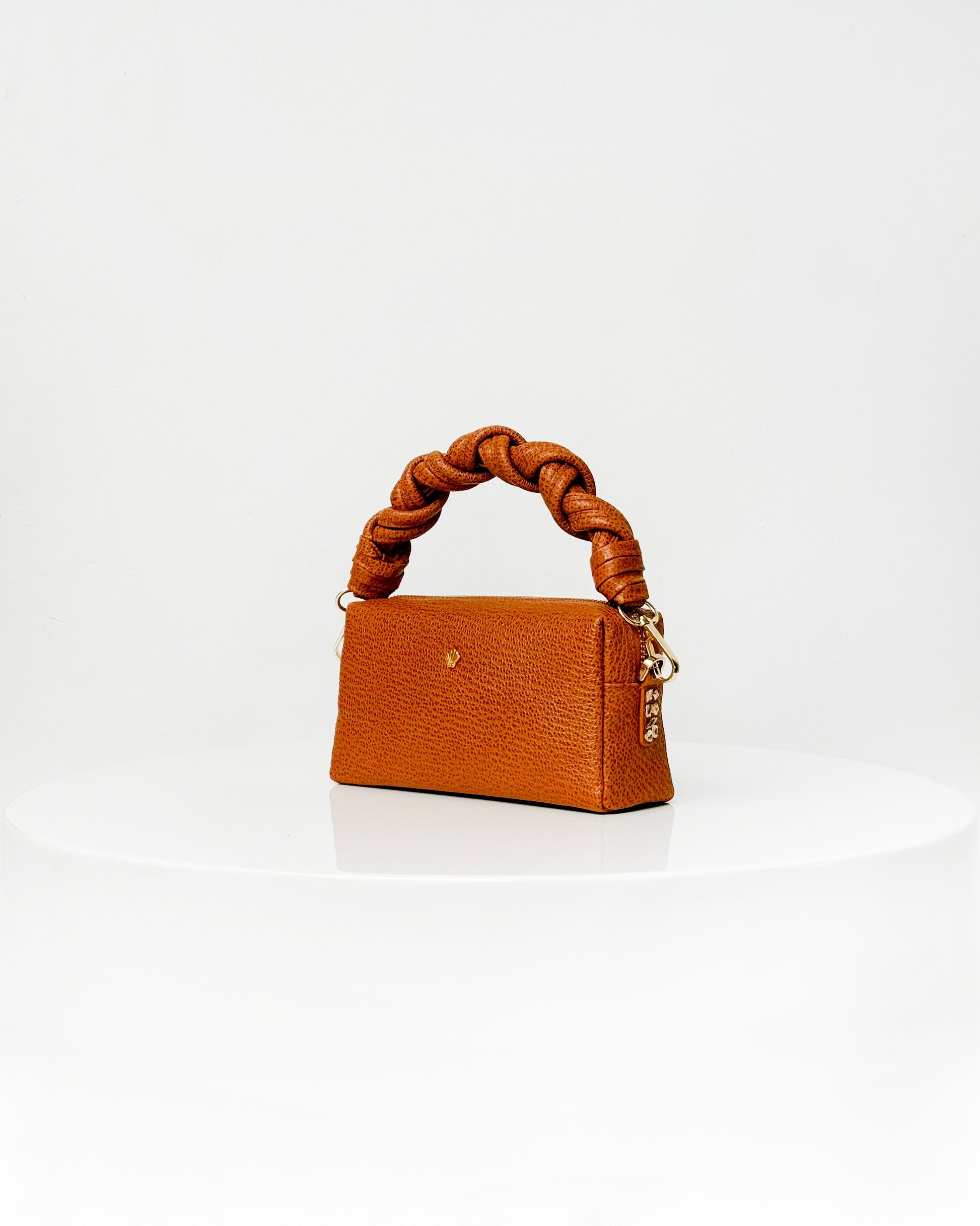 El Cosmo Rávena es una mini cartera pequeña, femenina y sofisticada, confeccionada en cuero 100% colombiano en un hermoso color avellana, un tono clásico y atemporal que combina con todo. Su delicado grabado resalta la textura del cuero, convirtiéndola en una pieza única y elegante.